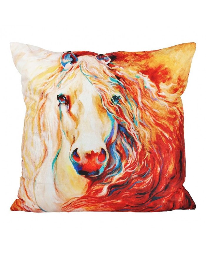 Dekorační povlak je stylovým prvkem, který zpestří celkový vzhled interiéru a zaslouží se o mimořádně útulnou atmosféru. Efektní dekorační povlak na polštář Kůň zaujme nejen milovníky těchto zvířat a je výborných doplňkem se do ložnicí, obývacích či dětských pokojů. Kůň je bezesporu jedno z nejkrásnějších zvířat a motiv tohoto majestátního koně naplní váš pokoj pozitivní energií. Unikátní souhra bohatých odstínů rozzáří jakoukoliv místnost.