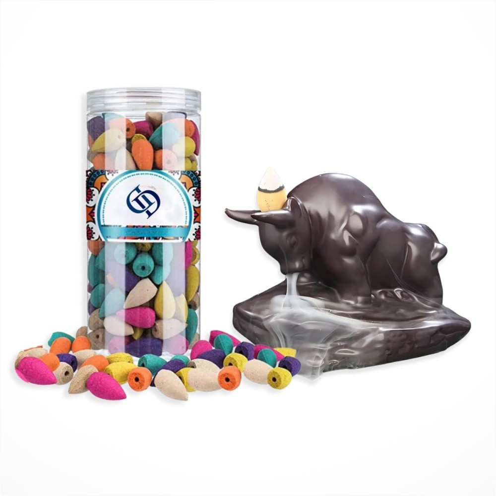 Sada difuzéru s efektem "tekoucího dýmu" a balení vonných kuželů je ideální pro kohokoliv, kdo se chce unést řadou vůní a jejich blahodárnými účinky, začátečníky zapalování vonných kuželů, milovníky aroma kuželů či pro praktikanty jógy a meditace. Mimo jiné je tato sada báječným dárkem. Difuzér byl navržen speciálně na vonné kužely a jejich zapálení vytvoří fascinující efekt. Kouř vonného kužele se line po stojanu, prochází jeho skulinkami a vytváří tzv. "tekoucí dým“. Každá vůně má lehce jiné blahodárné účinky. Obecně vonné kužely vaše tělo a mysl zrelaxují a uvolní, vymažou negativní energii v místnosti a jsou výborným pomocníkem při meditaci či józe. Mnoho aroma kuželů také působí antistresově a zlepšuje spánek. Díky naší sadě můžete vůně střídat podle libosti, potřeb a nálady.