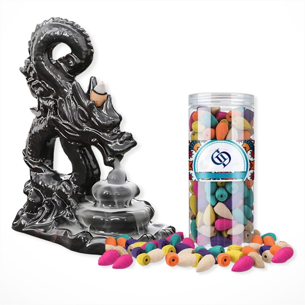 Sada difuzéru s efektem "tekoucího dýmu" a balení vonných kuželů je ideální pro kohokoliv, kdo se chce unést řadou vůní a jejich blahodárnými účinky, začátečníky zapalování vonných kuželů, milovníky aroma kuželů či pro praktikanty jógy a meditace. Mimo jiné je tato sada báječným dárkem. Difuzér byl navržen speciálně na vonné kužely a jejich zapálení vytvoří fascinující efekt. Kouř vonného kužele se line po stojanu, prochází jeho skulinkami a vytváří tzv. "tekoucí dým“. Každá vůně má lehce jiné blahodárné účinky. Obecně vonné kužely vaše tělo a mysl zrelaxují a uvolní, vymažou negativní energii v místnosti a jsou výborným pomocníkem při meditaci či józe. Mnoho aroma kuželů také působí antistresově a zlepšuje spánek. Díky naší sadě můžete vůně střídat podle libosti, potřeb a nálady.